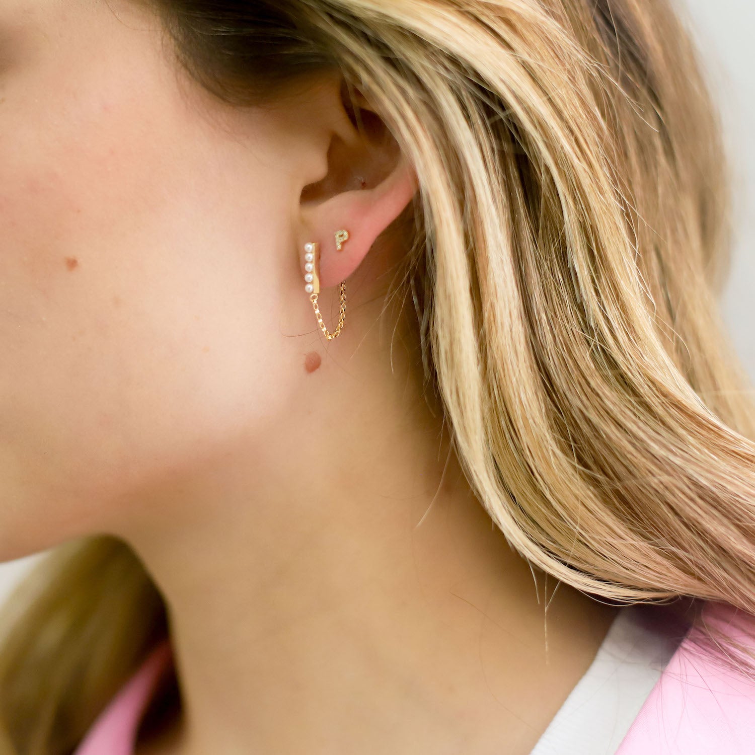 • Stud featuring dainty row of pearls