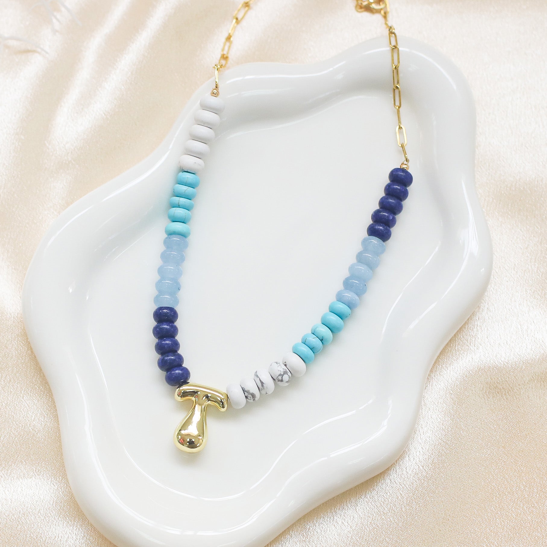 • Colorful necklace featuring large groovy bubble letter