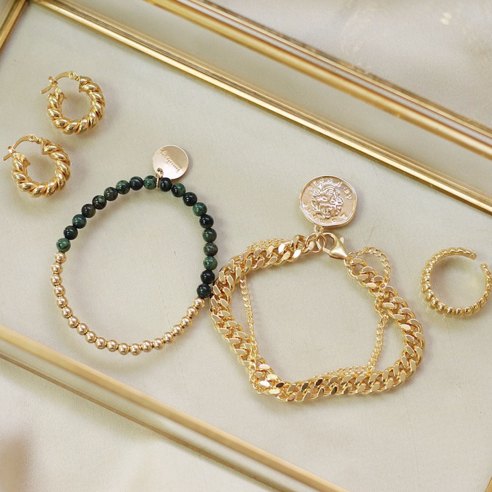 Model/Display styled with: City of Lights Necklace, Green Queen Bracelet, Keep it Simple Ring, Capri Earrings, Heavy Metal Ring, Little Extra Necklace