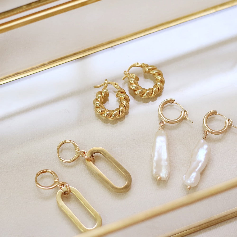 • 14k gold-filled spiral detailed hoops