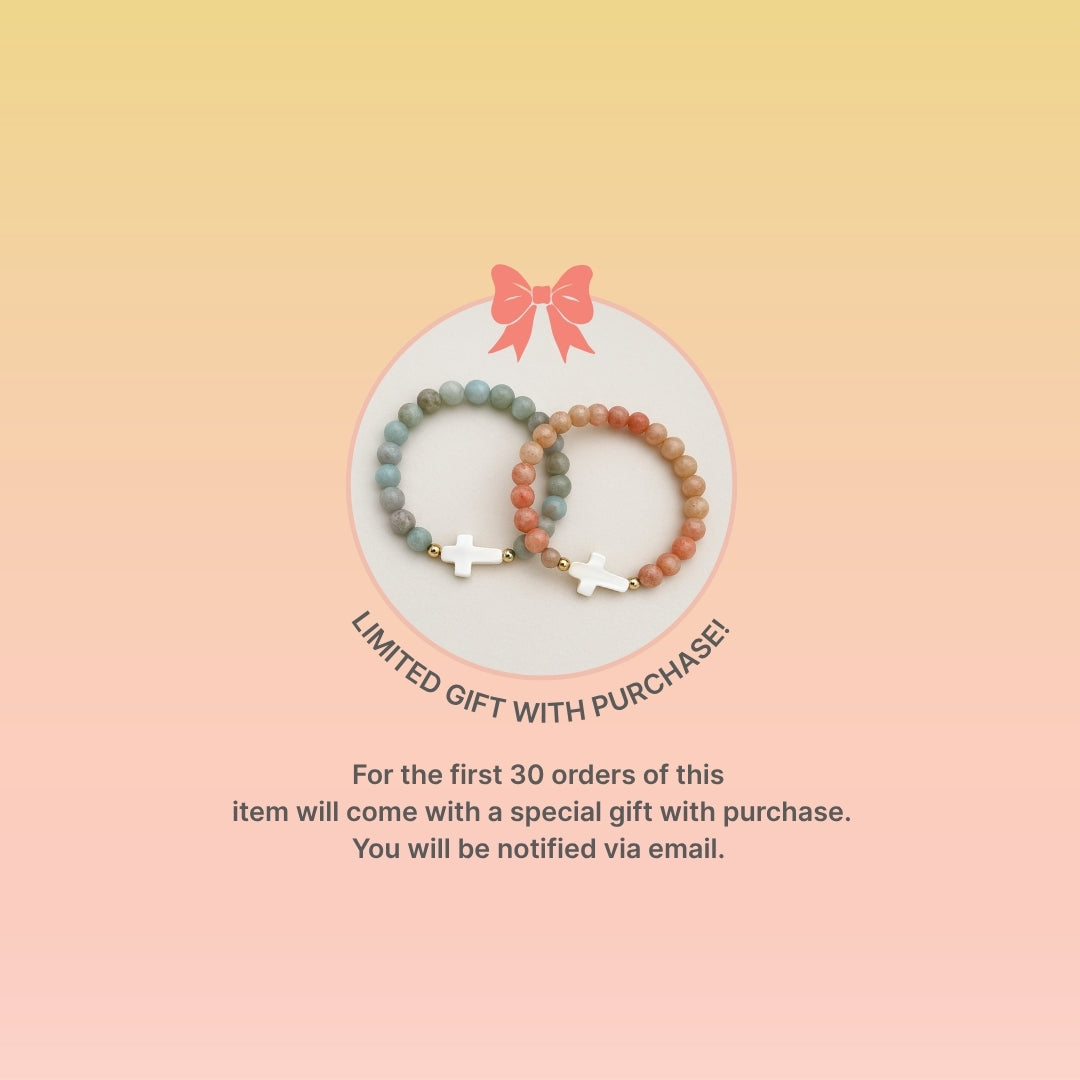 - Accented with a dainty pearl, thin cross and Virgin Mary charm