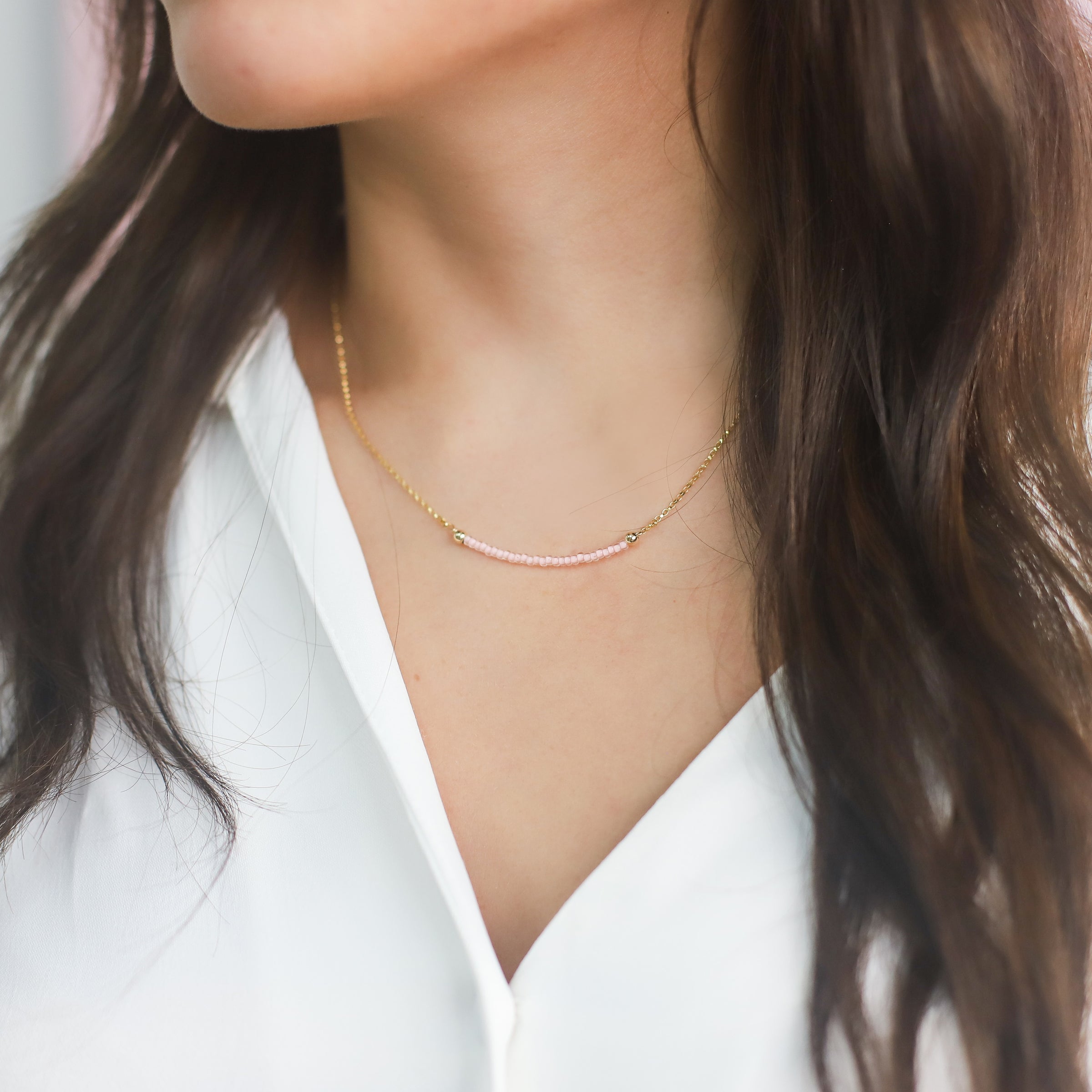 14k gold-filled rolo necklace featuring a row of dainty pink beads!
