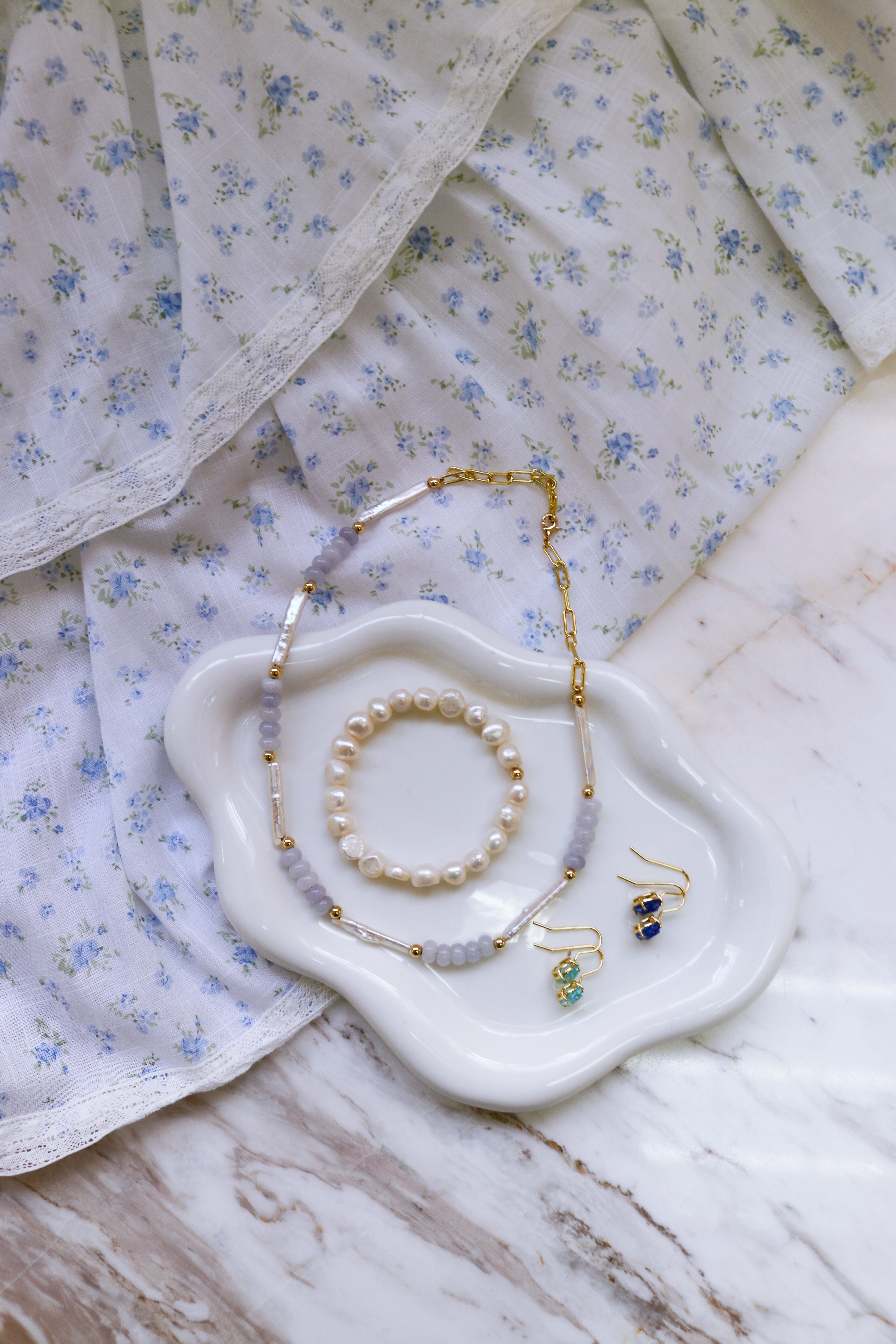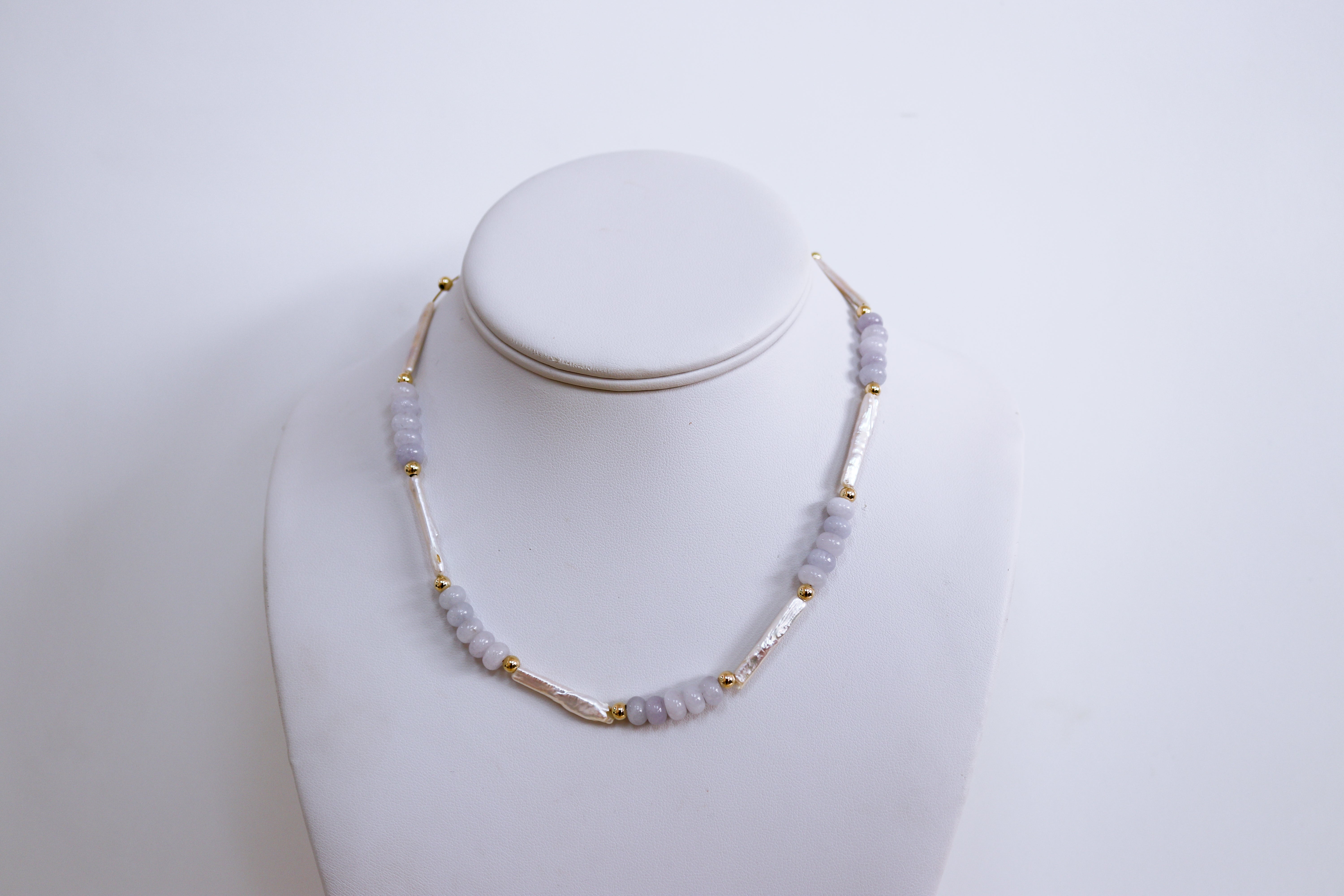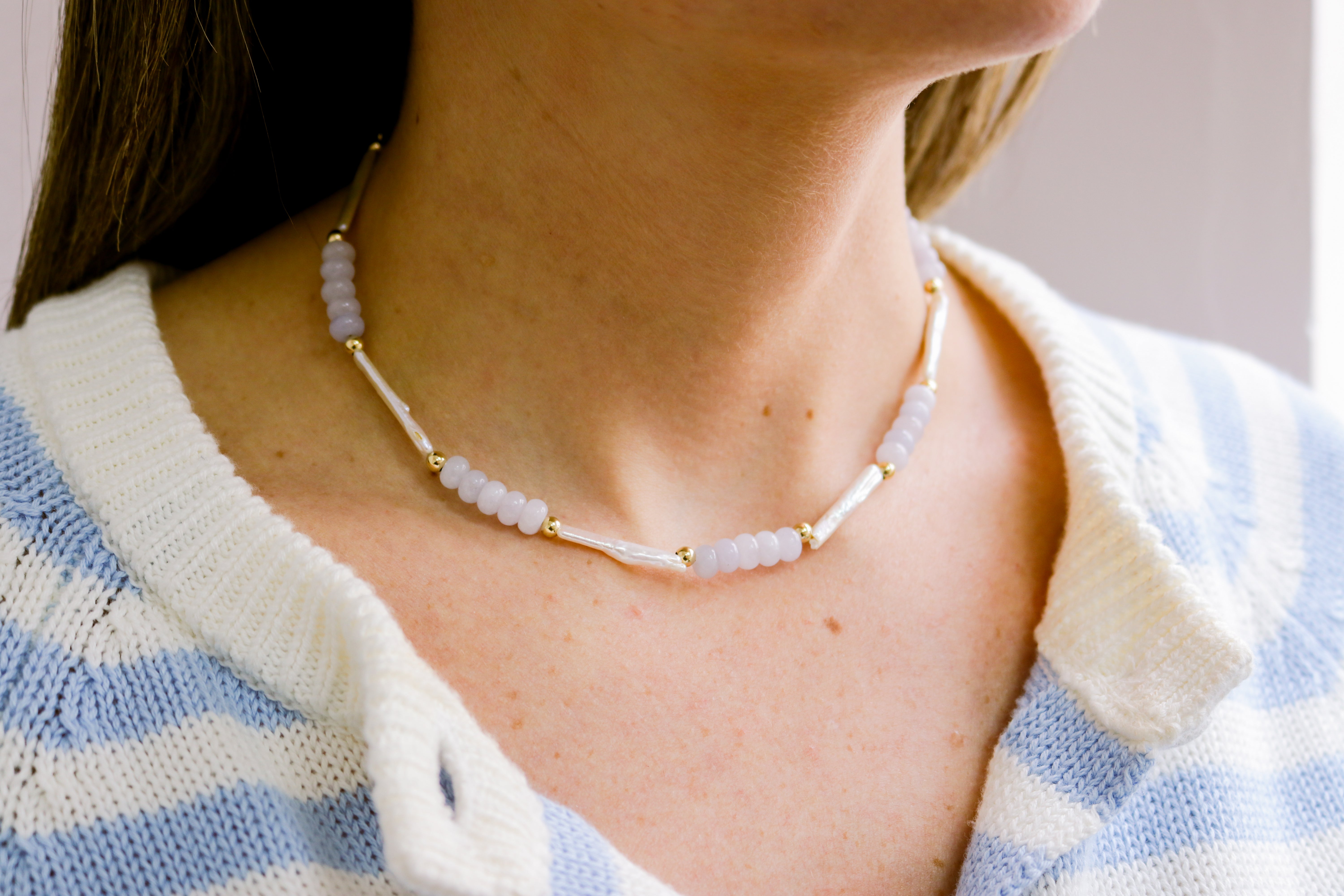 • Featuring a mix of blue agate beads, gold-filled beads and pearls