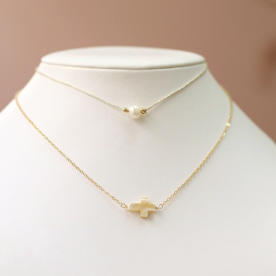 • Accented with cross-shaped pearl (beige tone mother-of-pearl)