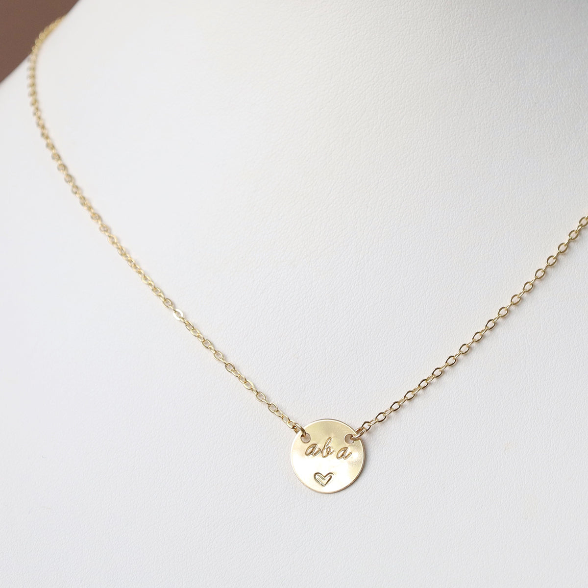 • Accented with “mini coin” (14k gold-filled, 14k rose-gold-filled or silver-filled) hand stamped with "aba" in a lowercase or script font, and a heart