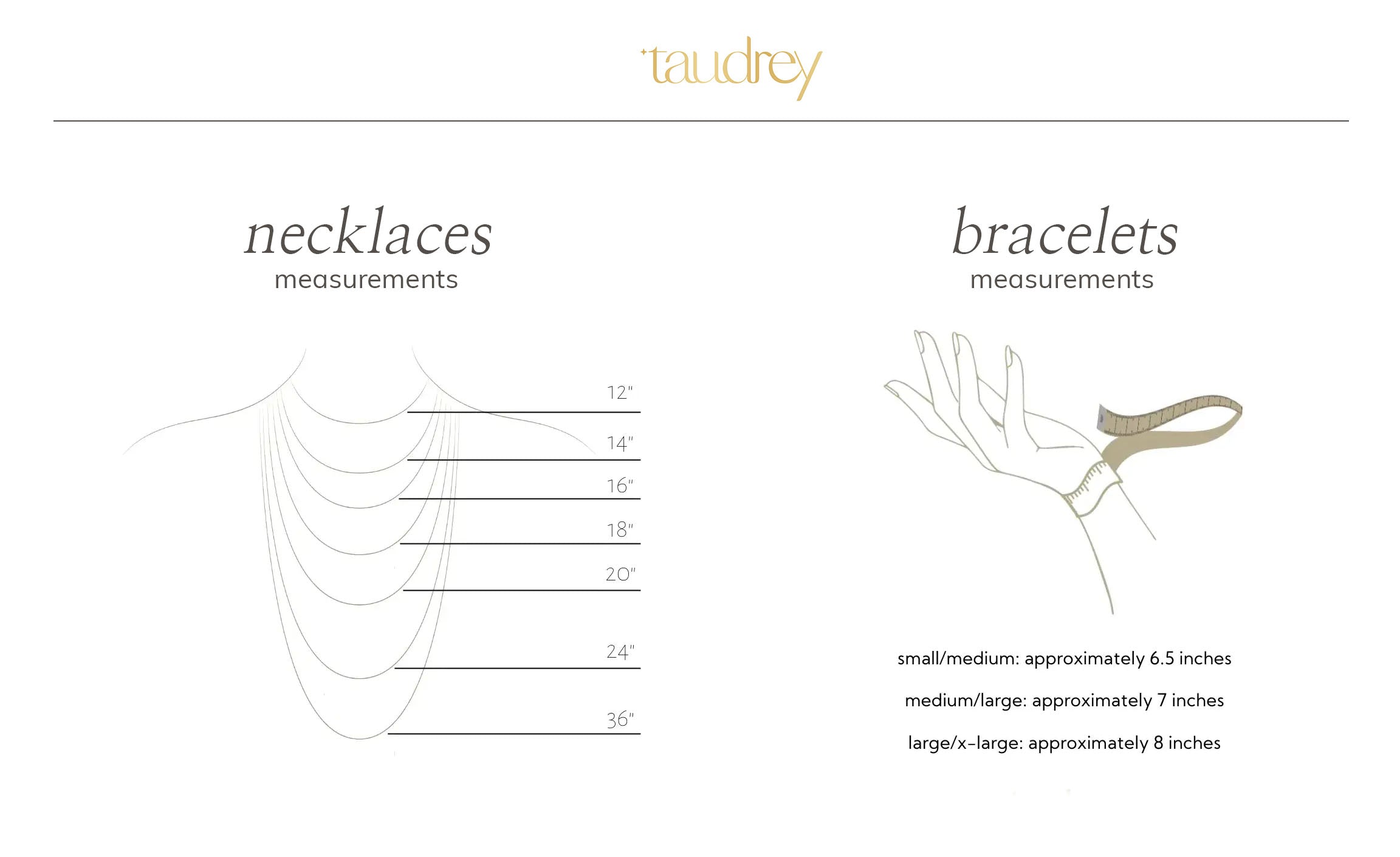 I absolutely love your jewelry and all your designs! I have a variety of bracelets, necklaces and earrings that I wear on a daily basis. I can never have enough Taudrey pieces. Thank you for all your dedication to your Taudrey girls!