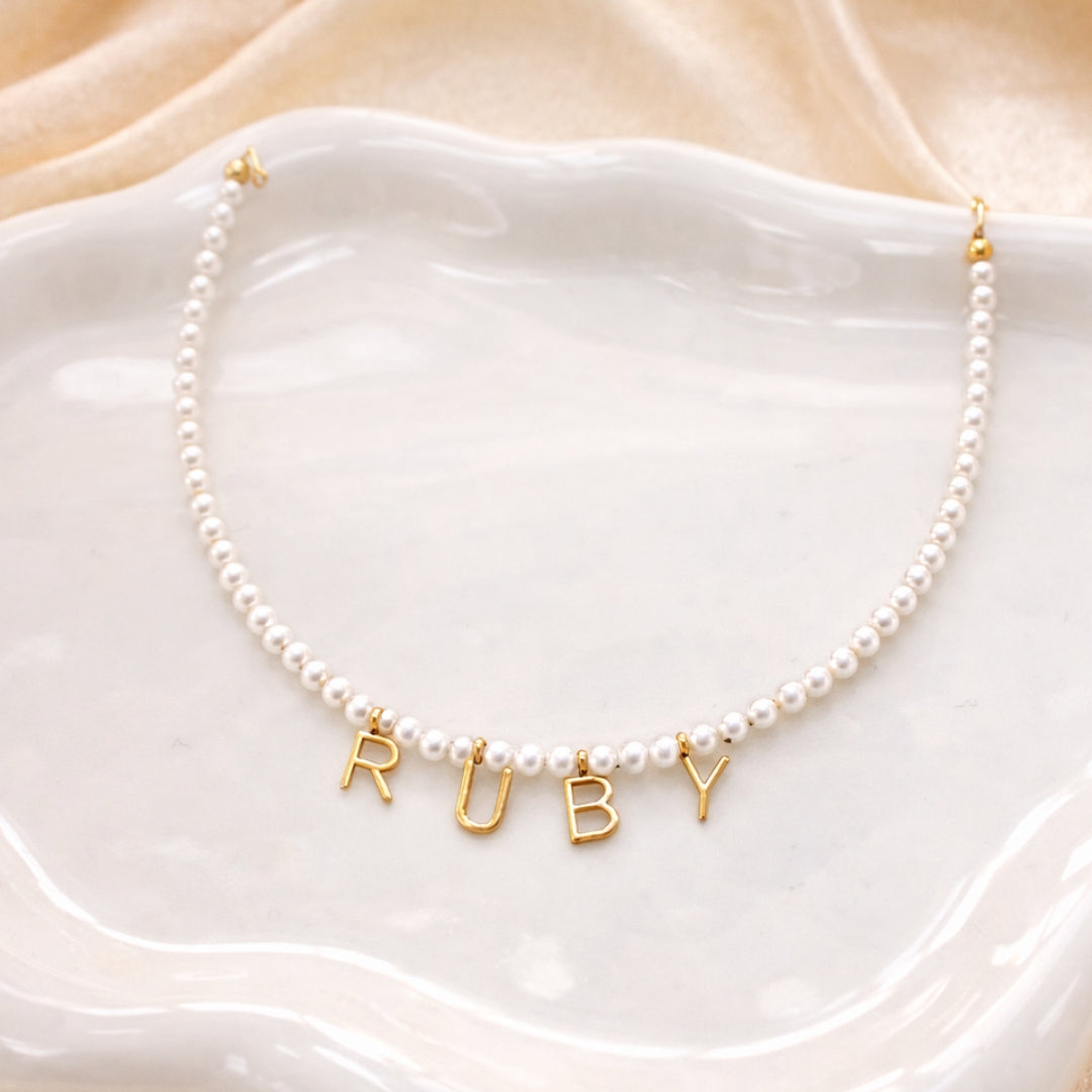 A little love made personal. The Sweetheart Necklace features delicate pearls and a gold name charm designed to sit close to the heart